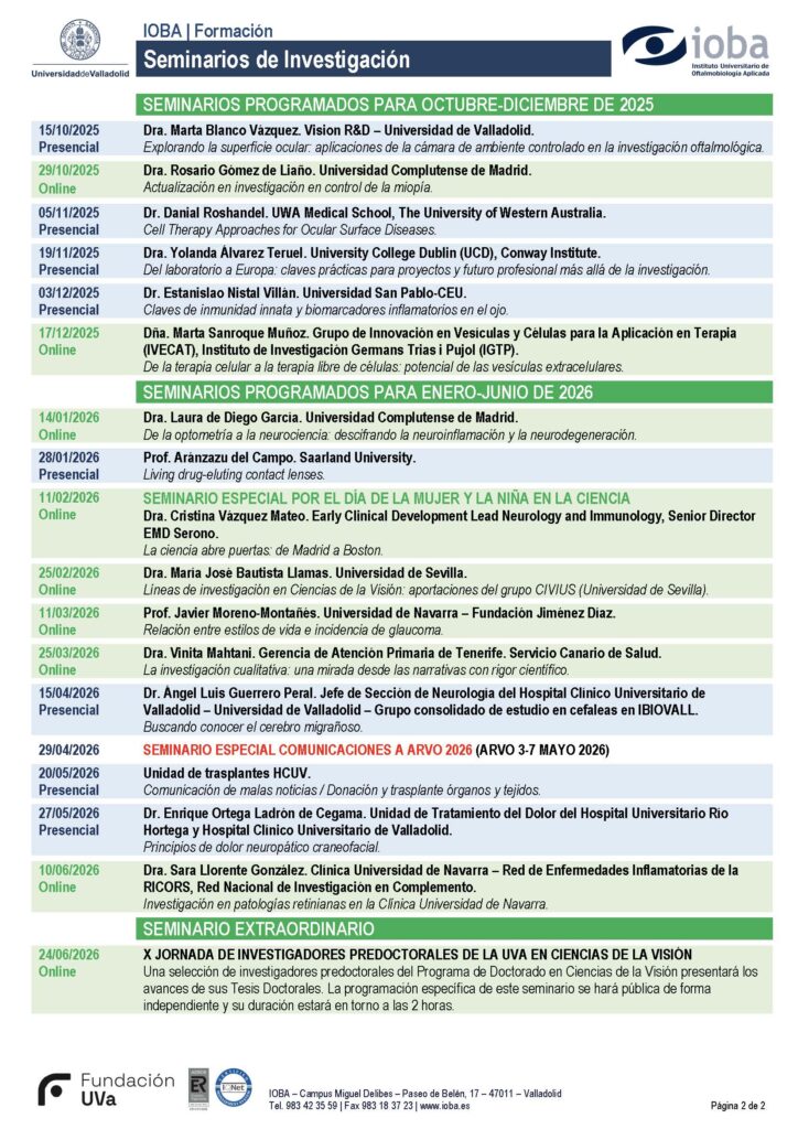 Calendario de seminarios de investigación IOBA curso 2025-26