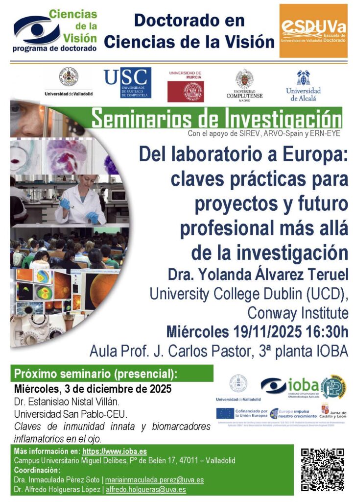 Seminario Investigación IOBA: "Del laboratorio a Europa: claves prácticas para proyectos y futuro profesional más allá de la investigación". Dra. Yolanda Álvarez Teruel